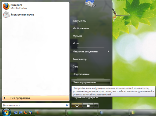 - Нажмите кнопку "ПУСК"-"Панель управления", как показано на рисунке: